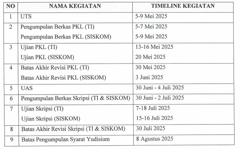 Berikut Timeline Fakultas Sains dan Teknologi 2024-2025 Genap.